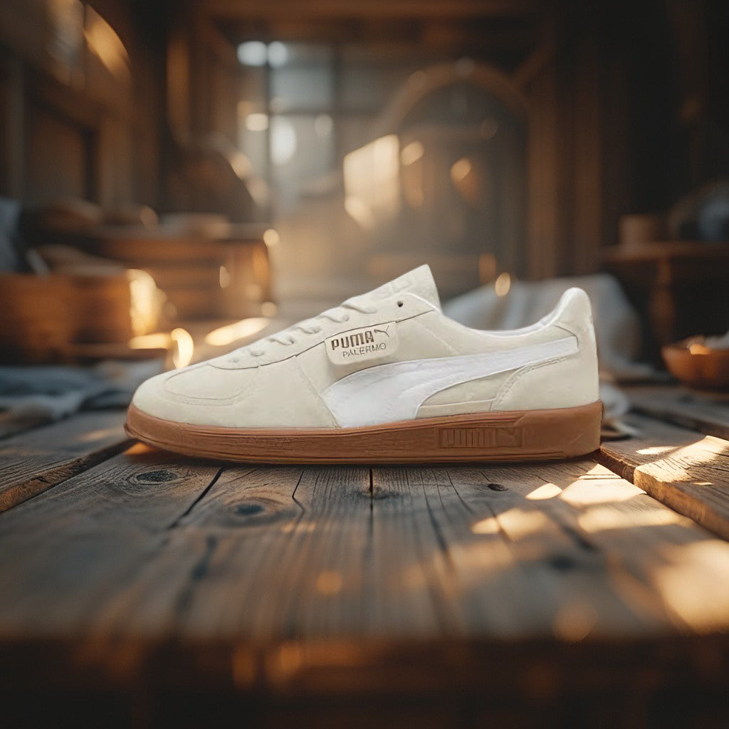 Designed for those who appreciate understated elegance combined with performance, this sneaker pairs perfectly with jeans, shorts, or even athleisure wear. The subtle yet distinct branding details, including the gold "PALERMO" tag and the Puma logo on the tongue, add an exclusive premium feel.
